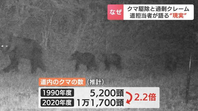 道内のクマの数は、推計で1990年度の5200頭から、2020年度は1万1700頭と2.2倍に増え、あわせて、生息域も広がっている現実があります。