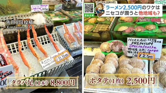 「この間、小樽に行ったんですけど、まさにインバウンド価格で、タラバ足8800円、ホタテ1枚2500円」