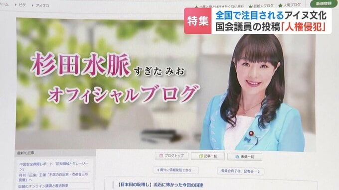 委員会に参加していたアイヌと在日コリアンの女性を揶揄(やゆ)したこの投稿は、おととし、国会の場で問題視され、杉田議員は投稿を削除した上で謝罪。