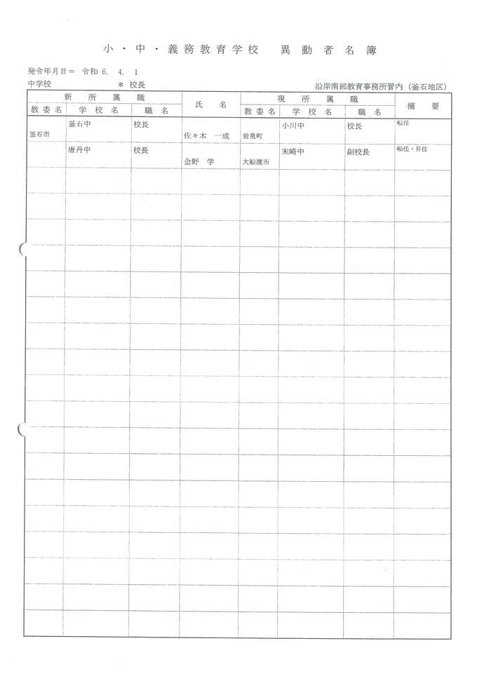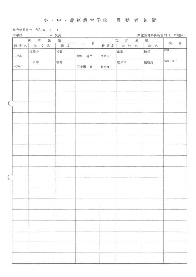 【県立学校長・中学校長・小学校長一覧掲載】岩手県教委 2024年度定期人事異動 規模は過去10年で最小 事務局にハラスメント対応へ「服務管理監」新設