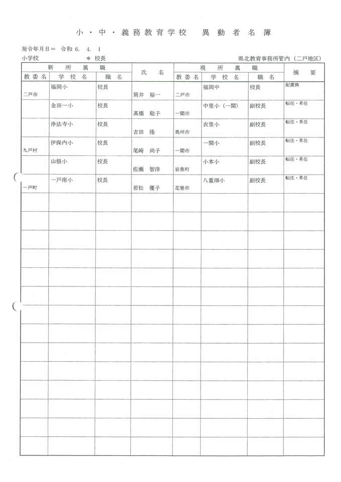 【県立学校長・中学校長・小学校長一覧掲載】岩手県教委 2024年度定期人事異動 規模は過去10年で最小 事務局にハラスメント対応へ「服務管理監」新設