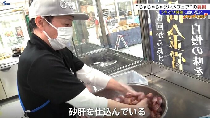 「これは砂肝を仕込んでいます。あしたの分を少しでも多く出せるように作ります」