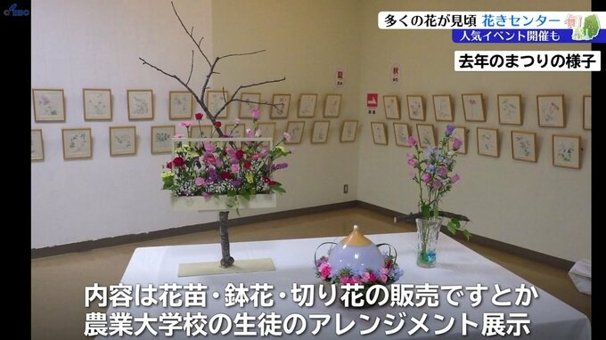 「『花きセンターまつり』が開催されます。内容としては花苗・鉢花・切り花の販売ですとか、農業大学校の生徒のアレンジメント展示。それから軽食、園芸用品、洋ランを販売する協賛店の出店を予定しております」