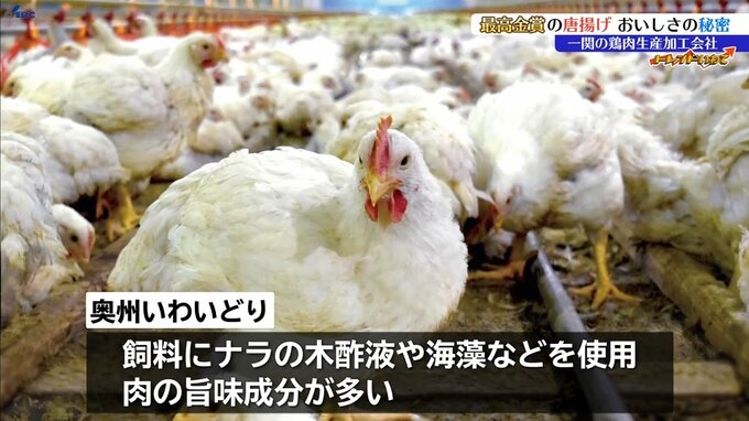 オヤマの鶏肉は、生産、処理、加工、流通、販売までを一貫して行っているのが強みです。銘柄鶏の一つ奥州いわいどりは、飼料にナラの木酢液、海藻などを使用することで、一般的な鶏肉よりも旨味成分が多いとされています。