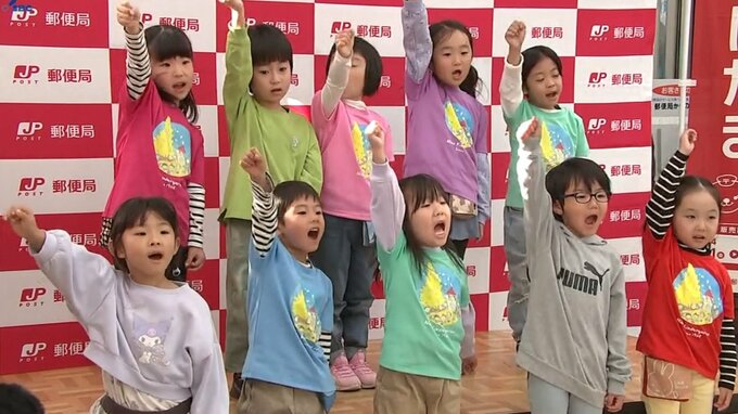 2025年用の年賀はがきの販売が1日全国一斉に始まり、盛岡市の郵便局では園児たちによるセレモニーが行われました。