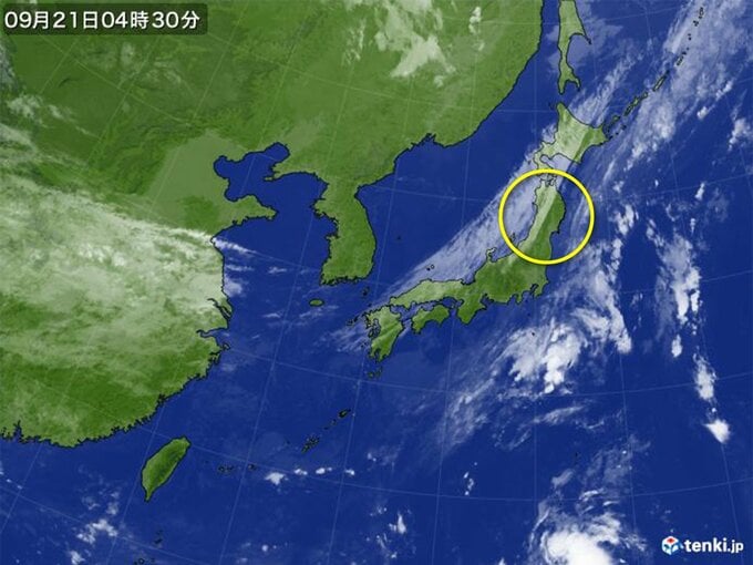撮影された時間帯、午前4時半の気象衛星の写真でも岩手県の上空で雲の端がはっきり直線になっているのが分かります。