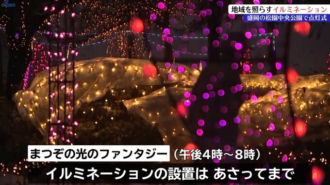 盛岡市松園地区の公園で6日、およそ10万個のLEDを使ったイルミネーションの点灯式が行われました。