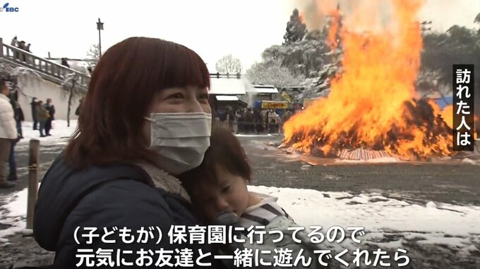 盛岡八幡宮の境内では正月飾りや古いお札を燃やす伝統行事「どんと祭」が行われ、訪れた人たちが一年の無病息災を願いました。