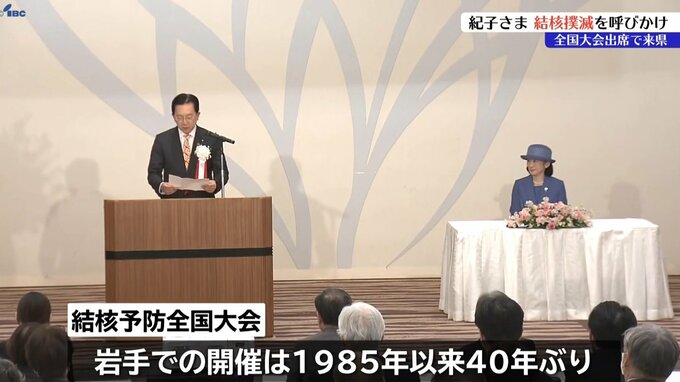 岩手で40年ぶりの開催となる結核予防全国大会が秋篠宮妃紀子さま出席のもと、盛岡市で行われました。感染症の一つ、結核の根絶を目的に掲げるこの大会は今回が76回目で、岩手での開催は1985年以来40年ぶりです。