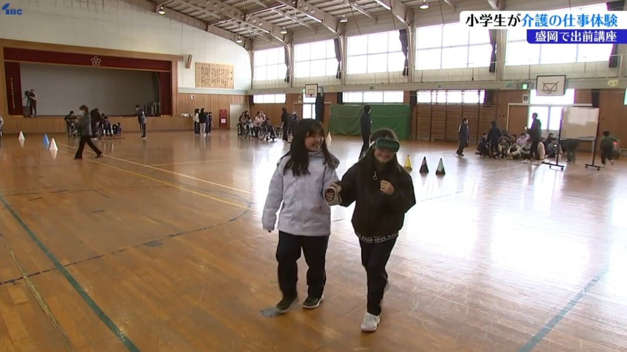 介護の仕事に理解を深めてもらおうと盛岡市の小学校で6日、介護職を紹介する出前講座が開かれました。