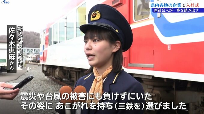 新たに三陸鉄道に加わったのは、駅員を務めることになる佐々木恵麻さん18歳に、臨時社員から正社員に任用された3人を加えたあわせて4人です。