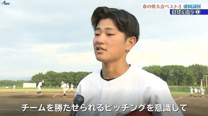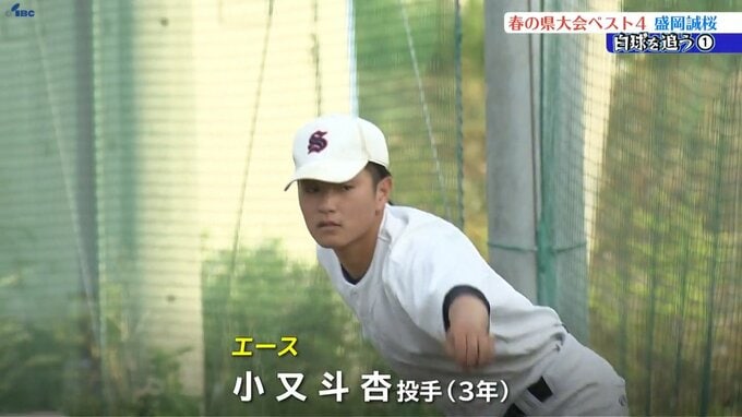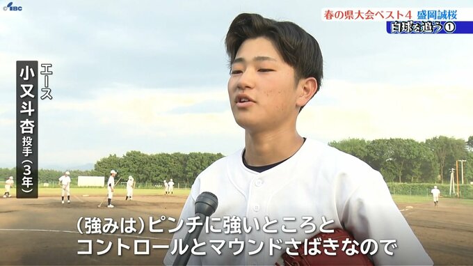 春の県大会準々決勝の水沢工業戦では9回を投げて被安打9、奪三振7失点2の好投で初の4強入りに貢献しました。