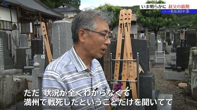 「物心ついたときから仏壇の上の鴨井にある写真は見てたんです。ただ、状況が全く分からなくて、ただ満州で戦死したということだけを聞いてて、全く、無機物という感じだったんですね。今まで」