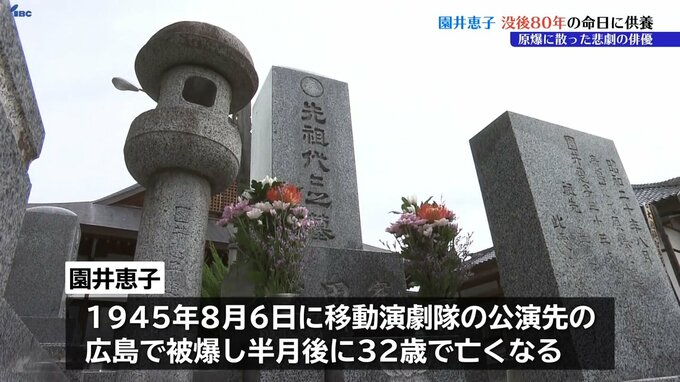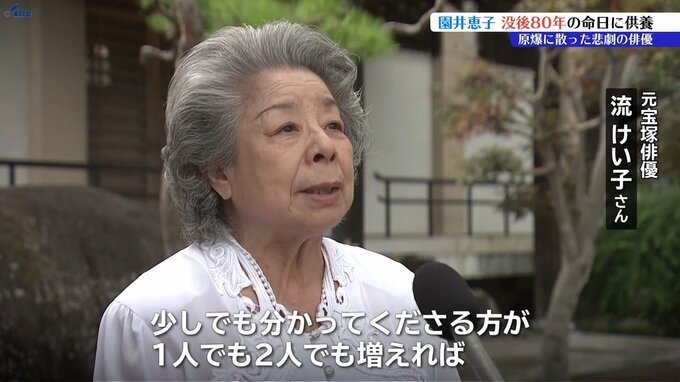 8月21日は広島で被爆し無念の死を遂げた岩手県内出身の元宝塚俳優・園井恵子の命日です。盛岡市内にある墓では没後80年の供養が行われました。