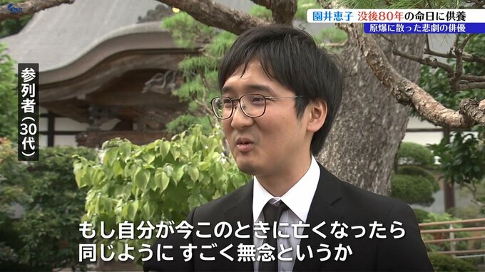 没後80年という節目を迎えた今年は、法要や、しのぶ会も催され、園井の後輩に当たる元宝塚俳優も訪れ遺徳をしのびました。