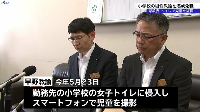 県教育委員会などによりますと、早野教諭は5月23日、勤務先の小学校の女子トイレに侵入し、スマートフォンで児童を撮影したということです。