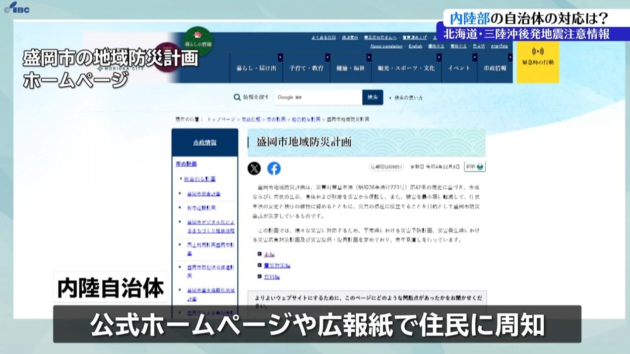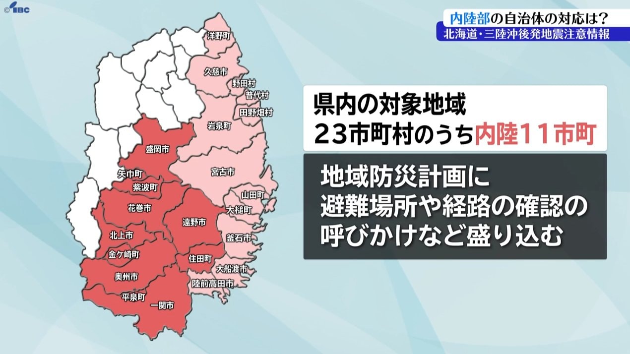 IBCが、県内23の市町村のうち、内陸部の11の市と町に取材をしたところ、いずれも地域防災計画を見直して、住民に避難場所や避難経路の確認といった備えを呼びかけることなどを盛り込んでいます。
