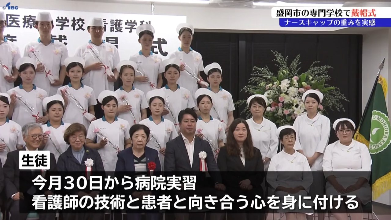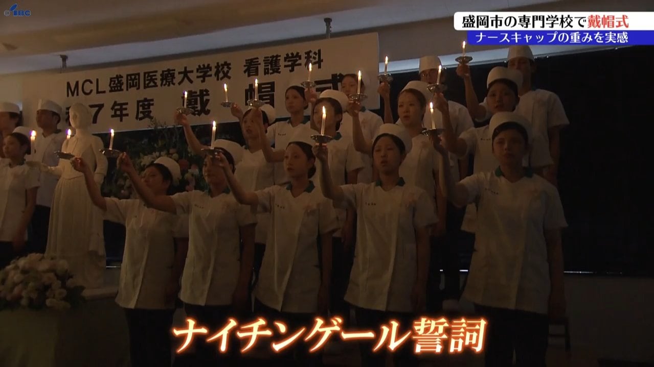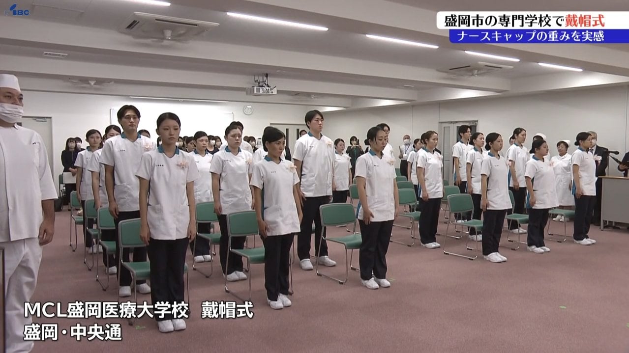 3日は盛岡市のMCL盛岡医療大学校で看護科の1年生25人が戴帽式に臨みました。