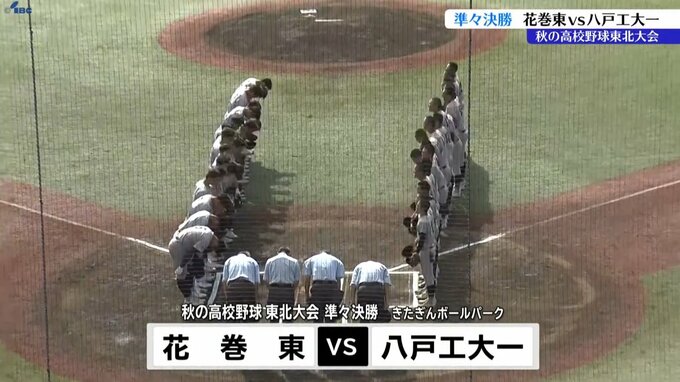 2年連続のベスト4進出を目指す花巻東は、盛岡市のきたぎんボールパークで青森第2代表の八戸工大一高と対戦しました。