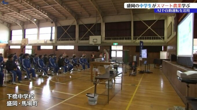 スマート農業を学ぶ授業が行われたのは、盛岡市の下橋中学校です。