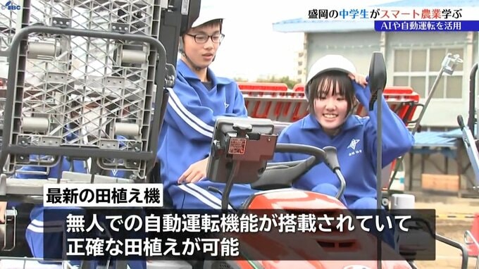 AIや自動運転などの最新技術を活用したスマート農業を学ぶ授業が22日に盛岡市の中学校で行われました。
