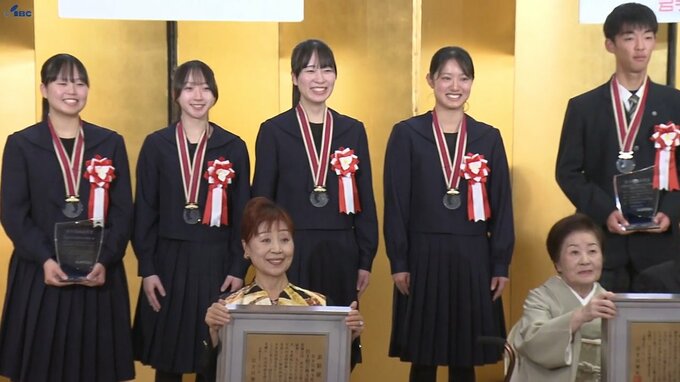 また、体育賞は2024年12月の全国高校選抜大会で優勝した花巻北高弓道部女子団体など2団体と2人に贈呈され、障害者スポーツを対象にした体育賞・希望と中学生に贈られる体育賞・未来に選出された1団体と2人にも記念の盾が贈られました。