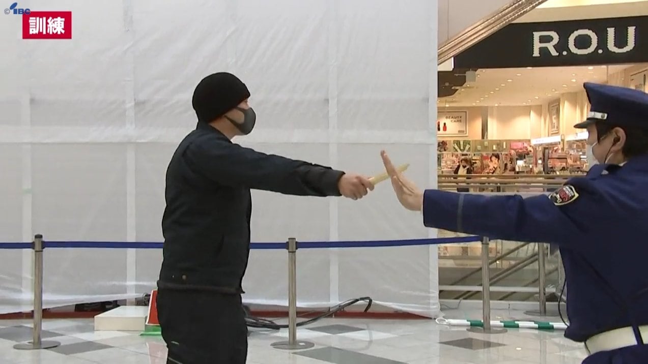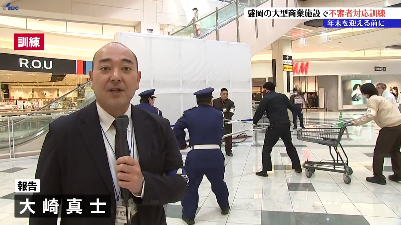 多くの買い物客が訪れる年末を迎えるのを前に、盛岡市の大型商業施設で刃物を持った不審者を想定した訓練が行われました。