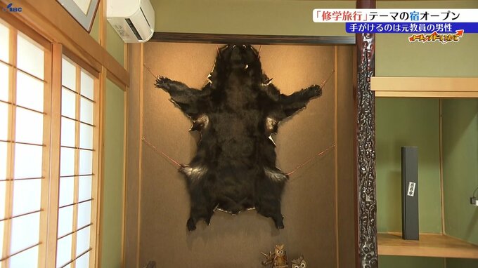 1階のひろびろとした和室で一際目を引くのが、床の間に飾られているクマの毛皮です。