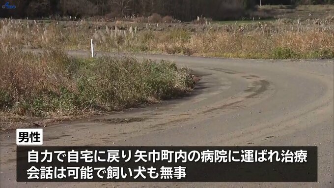 男性は自力で自宅に戻ったあと、男性の妻の通報により矢巾町内の病院に運ばれ、