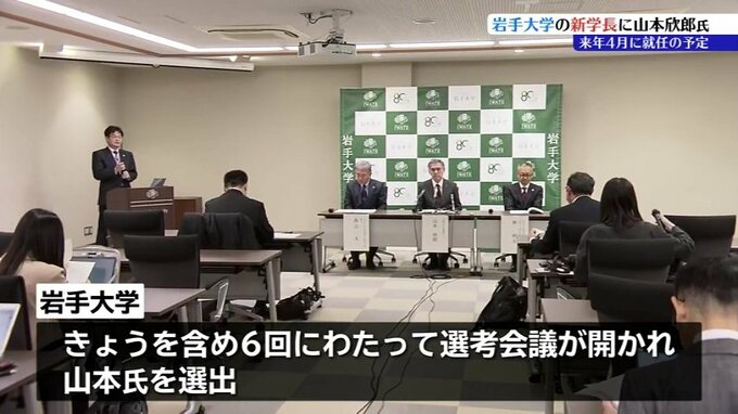 岩手大学では、今回を含め6回にわたって学長の選考会議が開かれ、その結果、山本氏が選ばれたということです。