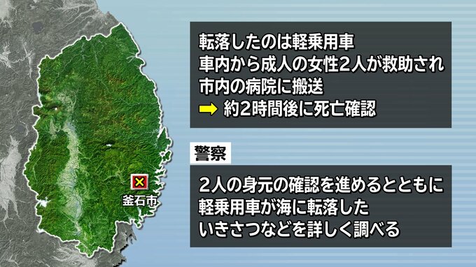 30日未明、岩手県釜石市で軽乗用車が海に転落しているのが見つかり、車内から女性2人が救助されましたが、その後、死亡しました。