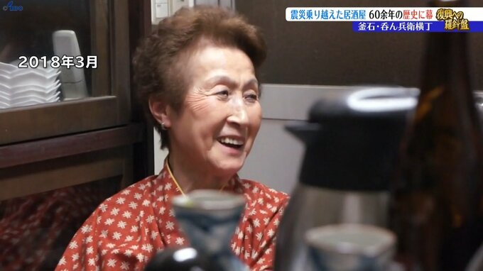 2011年の東日本大震災で呑ん兵衛横丁が全壊した際は、仲間と仮設店舗で営業を再開。仮設店舗が入居期限となった2018年に閉店を余儀なくされるも、翌年には市内で店を再開していました。