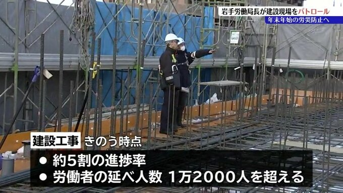 年末年始の労働災害を防止しようと、盛岡市のマンション建設現場で岩手労働局長による安全パトロールが行われました。