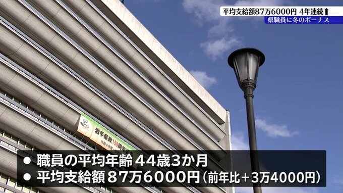 職員の平均年齢は44歳3か月で、平均支給額は2024年の冬よりおよそ3万4000円増え、87万6000円です。