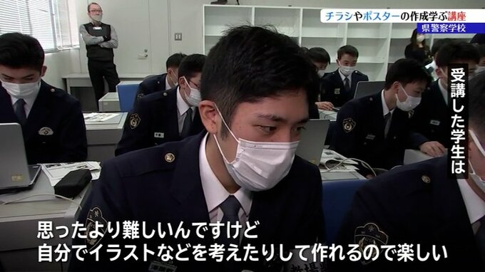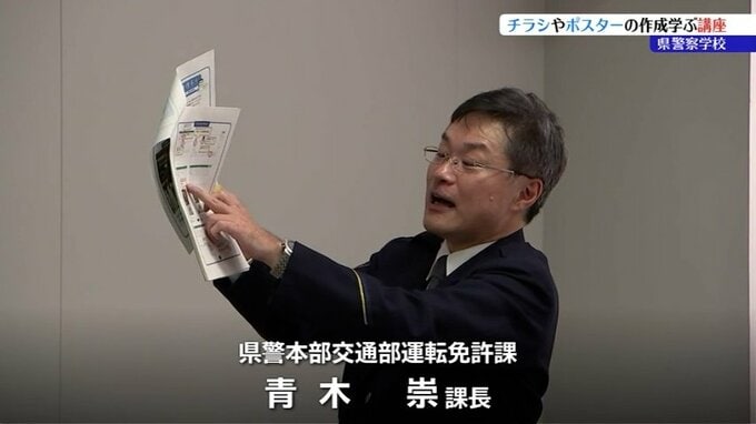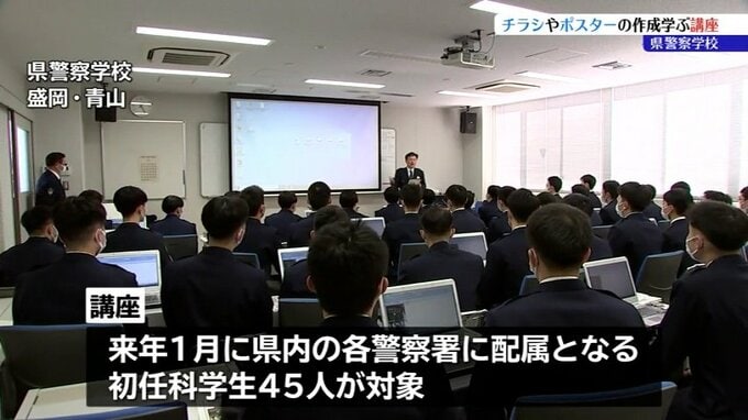 岩手県警察学校で15日、チラシやポスターの作り方を学ぶユニークな講座が初めて開かれました。
