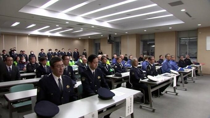 年末年始の特別警戒活動の開始に合わせて、盛岡東警察署で関係者による出発式が行われました。