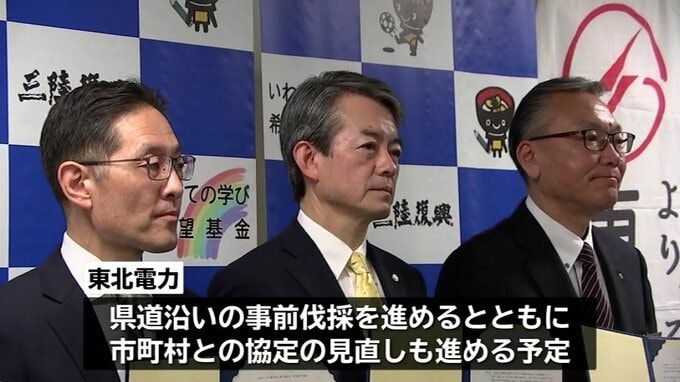 東北電力は今後、県と協議した上で県道沿いの事前伐採を進めることにしていて、市町村との協定の見直しも進める考えです。