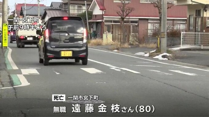 15日午後、岩手県一関市の県道で横断歩道を渡っていた近くに住む80歳の女性が車にはねられ死亡しました。