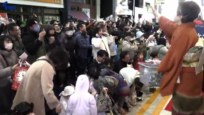 また、ホットライン肴町では丸餅や菓子まきが行われ、monakaや隣接するアーケードは多くの家族連れなどでにぎわいました。