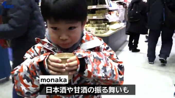 この他、各店舗で販売している商品を購入する人や、振る舞われた甘酒や日本酒を楽しむ買い物客の姿がありました。