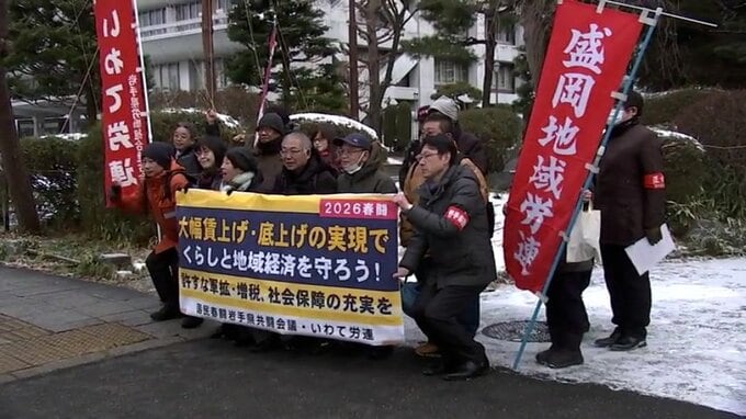 春闘のスタートです。岩手県内の労働組合でつくる団体が物価高騰を上回る賃上げを求めて街頭宣伝活動を行いました。