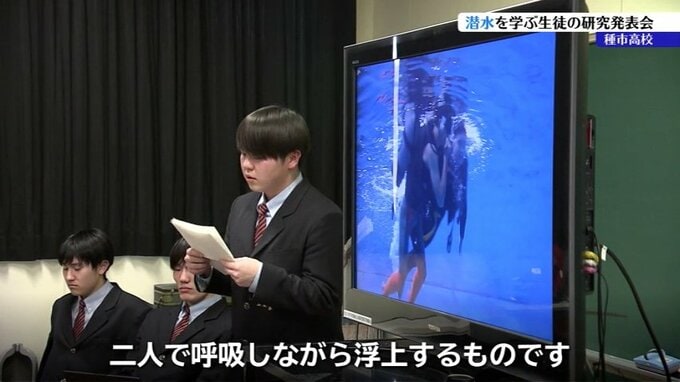 潜水を学ぶ岩手県洋野町の高校3年生が26日、1年を通して取り組んだ研究テーマの発表を行いました。