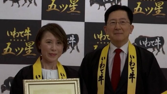 盛岡市内のホテルで9日に行われたお披露目会には達増知事や畜産関係者が出席し、「チャンピオン牛」の試食などが行われました。