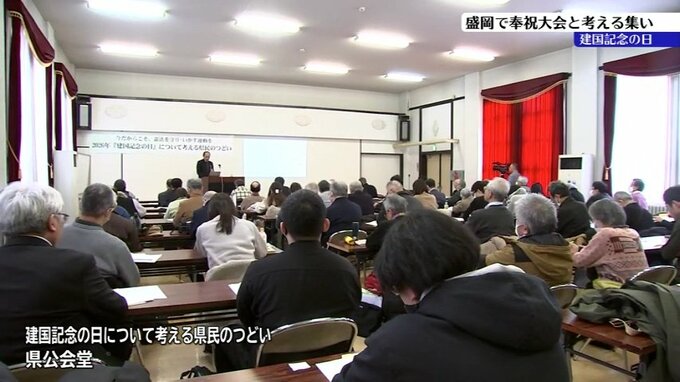 一方「『建国記念の日』について考える県民のつどい」は、いわて労連など県内の7団体が共同で開催し、およそ70人が参加しました。