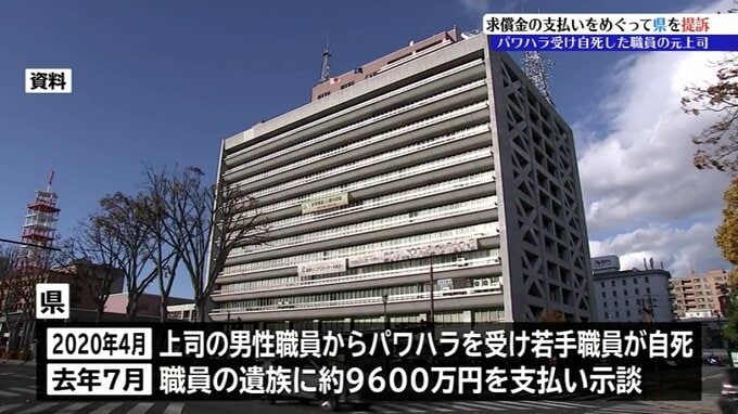 県は、2020年4月に当時上司だった50代の総括課長級の男性職員からパワハラを受け若手職員が自殺したことを受けて、2025年7月、職員の遺族に対して9600万円あまりを賠償金として支払い示談しました。