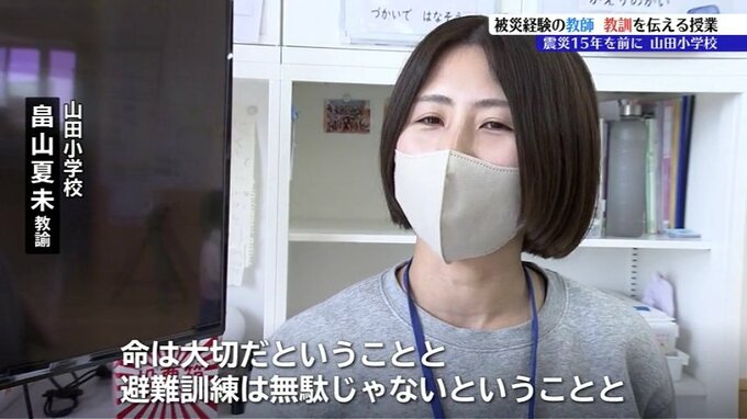 「命は大切だということと避難訓練は無駄じゃないということと、当たり前の今頑張って生活している当たり前のことが実は当たり前じゃないよ、幸せなことなんだよということを必ず伝えています。伝え方を考えれば1年生でもしっかりと心の中に収めてくれることは分かっている。伝わったと思います」