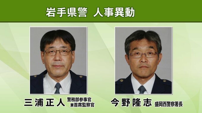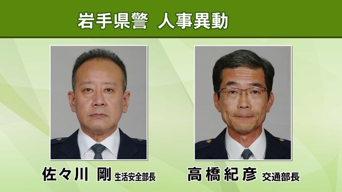 また、生活安全部長には佐々川剛東北管区警察局通信庶務課長、交通部長に高橋紀彦交通部参事官兼交通企画課長、警務部参事官兼首席監察官には三浦正人警務部参事官兼警務課長、盛岡西警察署の署長には今野隆志刑事部参事官兼捜査第一課長が就任します。