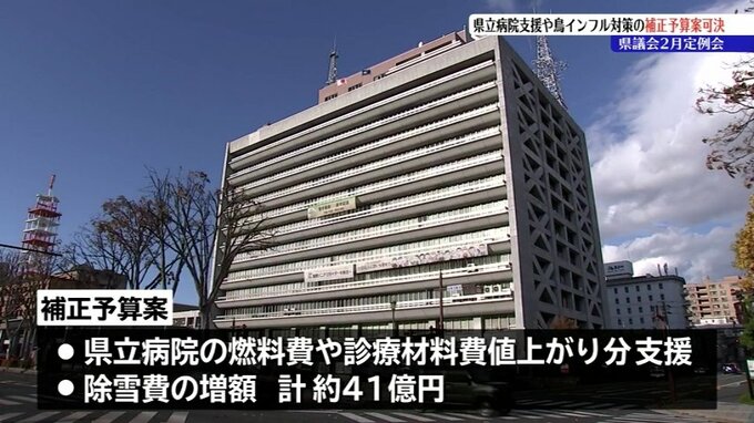 このうち補正予算は、県立病院の燃料費や診療に必要な材料の値上がり分の支援と、除雪費の増額に合わせて41億円あまりが計上されました。