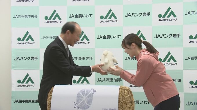 激励会は、吉田選手の健闘をたたえようとJAいわてグループが開いたもので、2025年デビューした県のオリジナルブランド米、白銀のひかり60キロなどが贈られました。