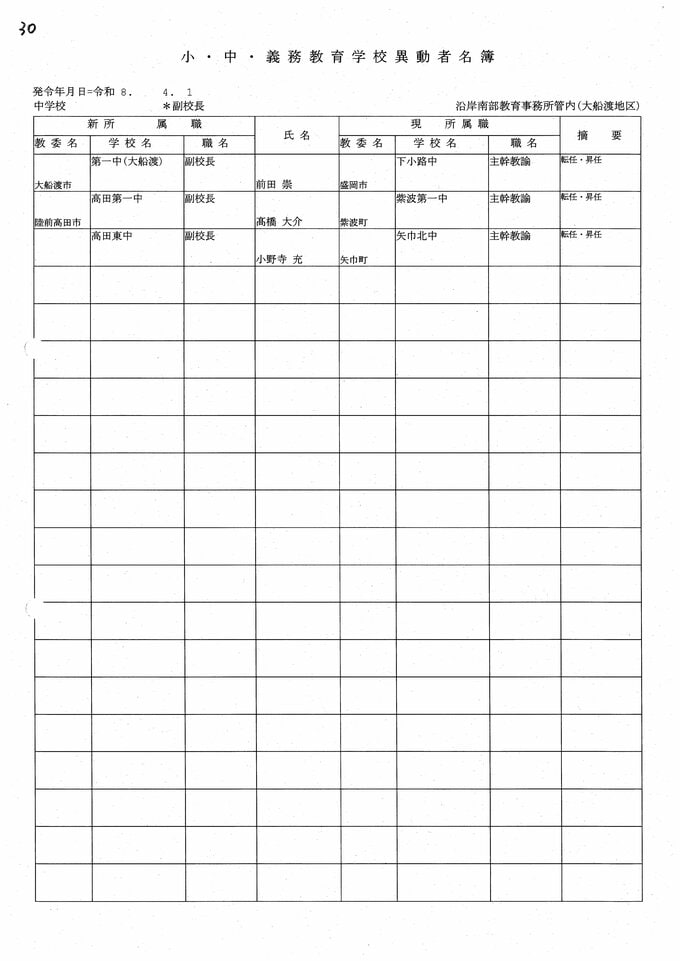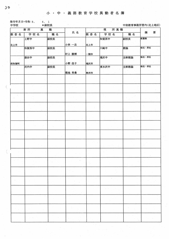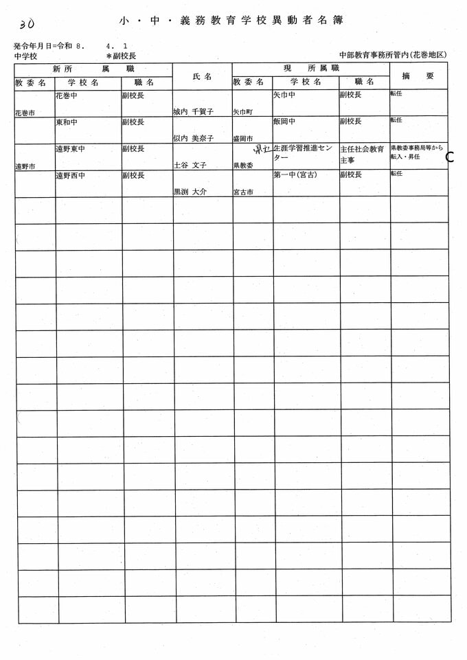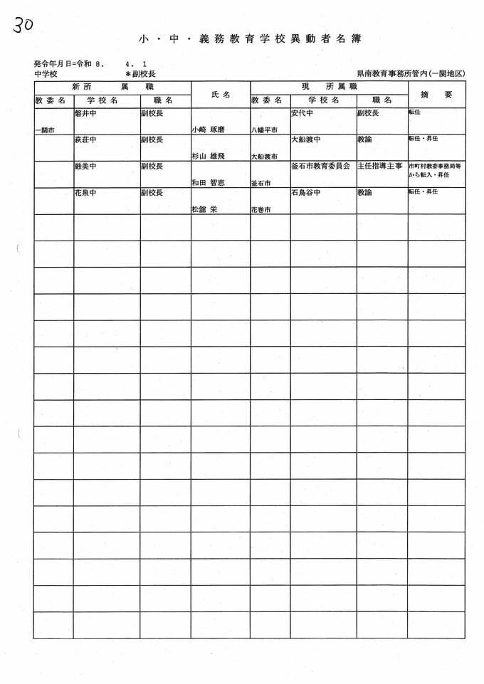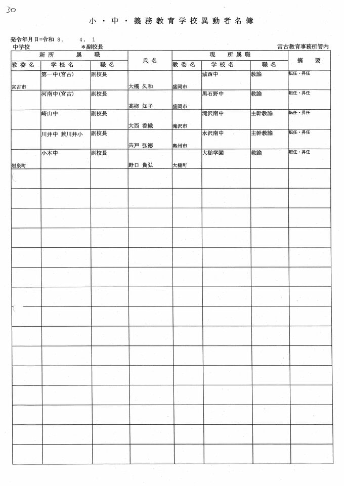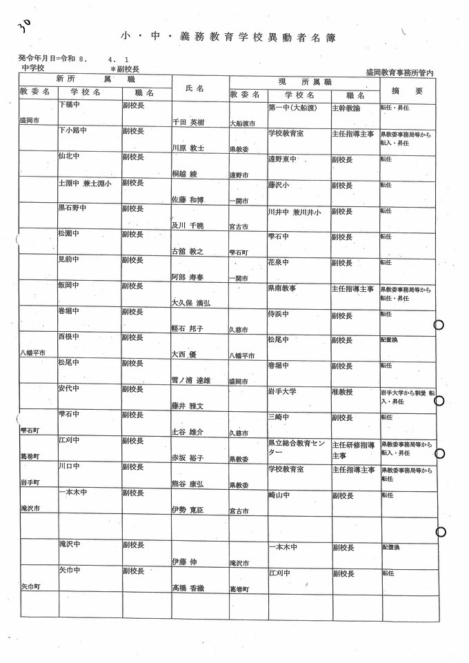 岩手県教職員人事異動2026年度 あの先生はどこへ行っちゃうの?(中学校)